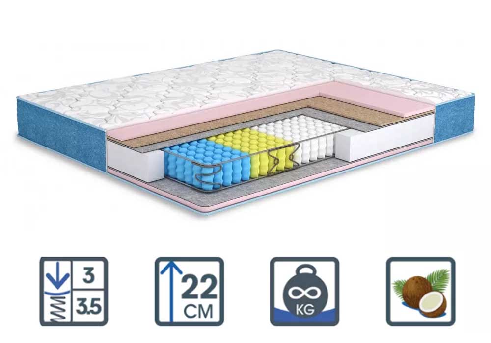 • Кокосовая койра. Натуральная прослойка переработанного особым способом растительного волокна призвана корректировать жесткость поверхности. Наполнитель отлично сохраняет структуру, не гниет, обладает гипоаллергенными свойствами.