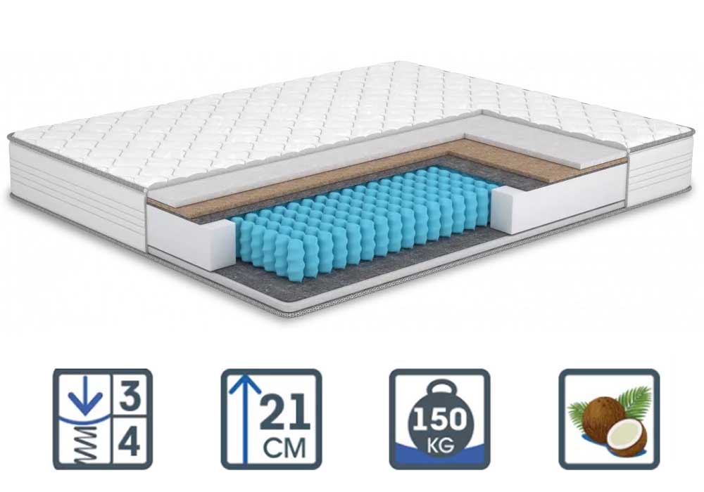 • Cocos Coir. Компонент из кокосового волокна и латекса корректирует жесткость, надежен, безопасен с санитарной точки зрения. Он не гниет, долго сохраняет структуру и плотность.