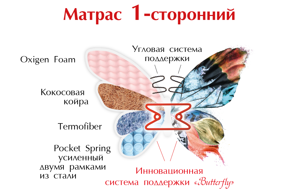 БрендButterfly ЖесткостьЖесткий Тип матрасаОдносторонний