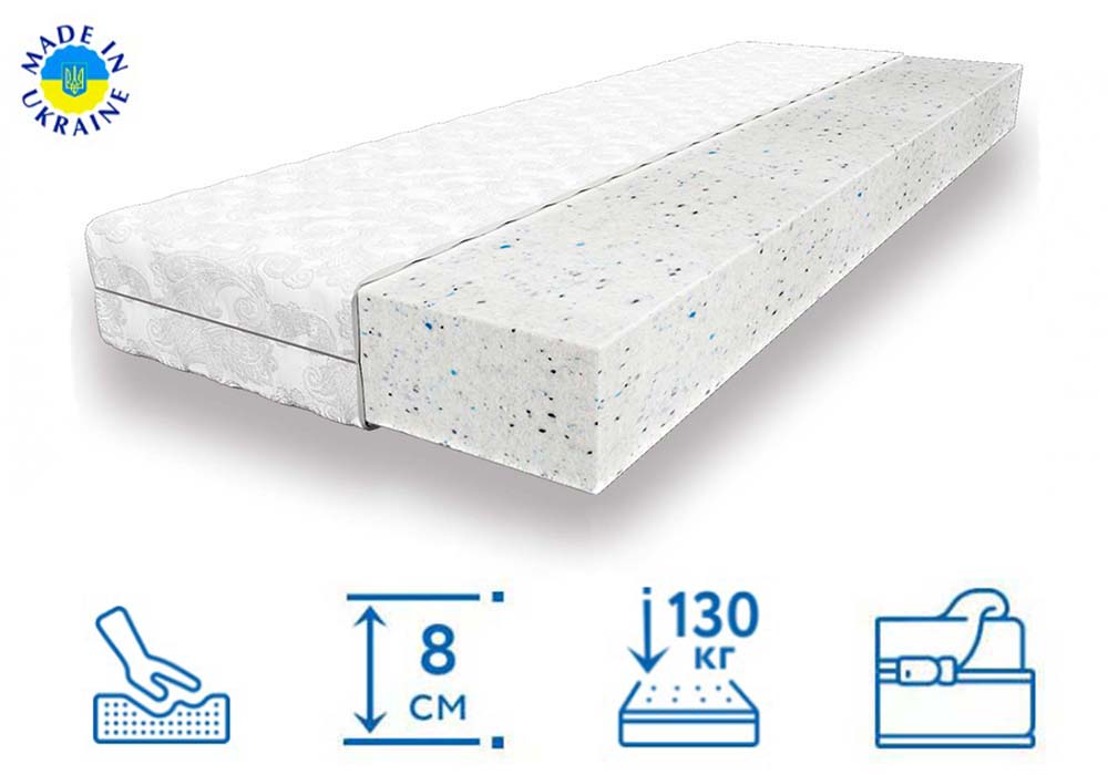 Отримала матрац 8см товщини. Дуже задоволена!! Пружній, гарно тримає форму. Дійсно має ортопедичні властивості. Рекомендую