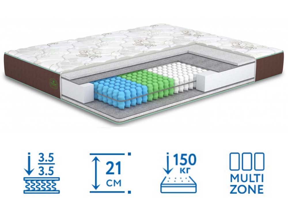 Экологичный и удобный матрас Wind/Винд купить в интернет-магазине Матрас ТВ заинтересованные покупатели могут на привлекательных условиях. Модуль автономных пружин Smart Spring Multizone обеспечивает правильное распределение нагрузки, обладает отменными ортопедическим свойствами. Стальные элементы с разным уровнем сопротивления нагрузке обеспечивают деление спальной поверхности на 7 анатомических зон. Это создает все условия для здорового сна, служит профилактикой от заболеваний спины.