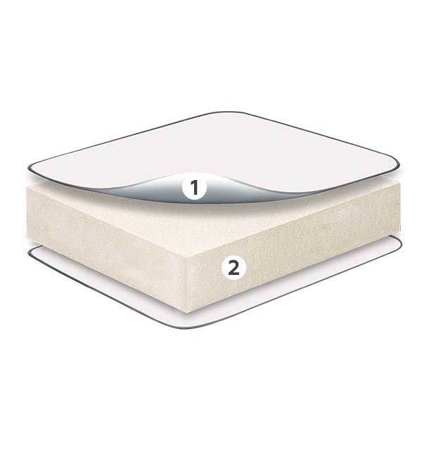 В основе топпера высотой 4 см применяется вспененный по особой технологии полиуретан. Пена состоит из мелких ячеек. Такая структура обладает нужной степенью упругости, равномерно распределяет нагрузку. Наполнитель хорошо пропускает воздух, устойчив к внешним нагрузкам, не способен вызвать аллергическую реакцию.