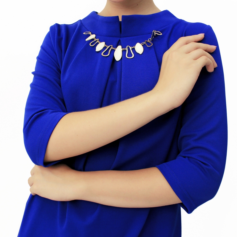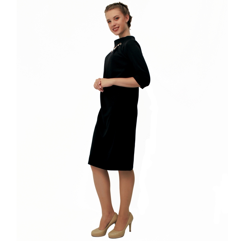 Платье "Бритни" идеально подходит как для праздничного мероприятия, так и для офисных будней. Его прямой крой, длина до колена и рукава три четверти придают вашему образу изысканность и стиль. А выделяет платье элегантный декор в виде цепочки с камнями, делая ваш наряд полным и завершенным без необходимости дополнительных украшений.