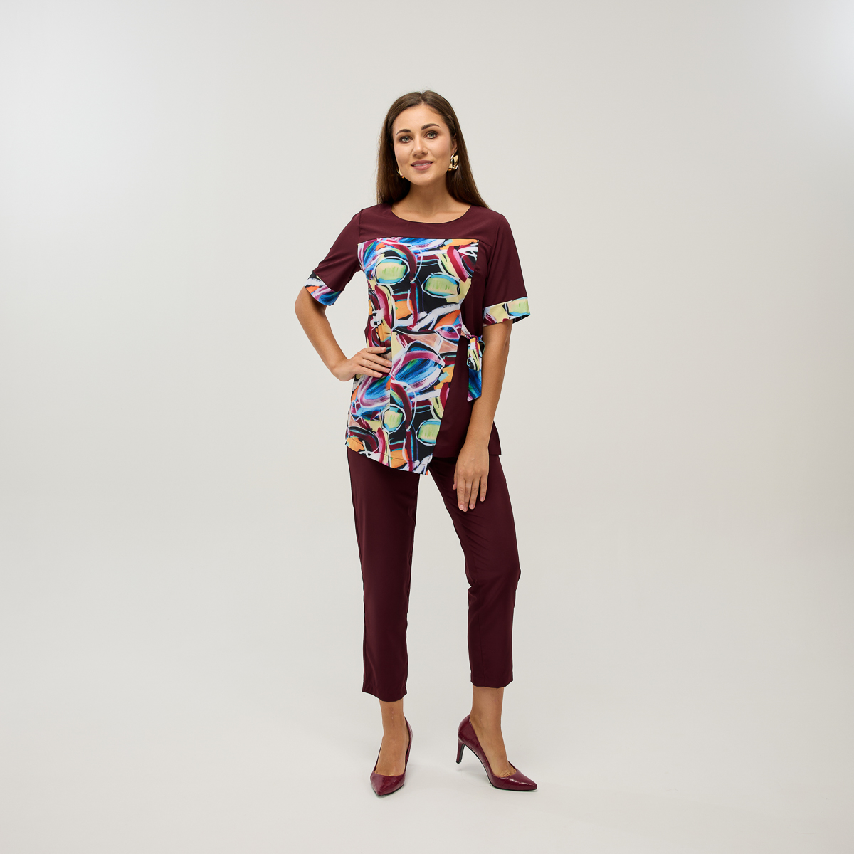 "Що мені одягнути?" - це питання більше не буде турбувати вас. Забудьте про те, як складно знайти потрібні речі. Рішення є на Распакуй TV! Презентуємо супер-тренд - костюм Ребекка у оновлених кольорових вирішеннях! Елегантна та яскрава блузка, доповнена легко звуженими брюками в класичному стилі. Будьте завжди стильними та елегантними! В наявності розміри до 70.