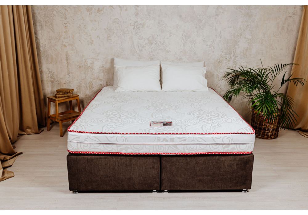 Матрац Four Red Rubin купити в інтернет-магазині Матрац ТБ можна прямо з дому. Двостороння модель висотою 20 см з асиметричною жорсткістю дозволить без зайвих зусиль створити умови для повноцінного нічного сну в будь-який час року. Конструкція заснована на грамотному поєднанні різних наповнювачів з блоком незв'язаних пружин, що відрізняються за ступенем пружності. Таким чином виробнику вдається забезпечити відмінні ортопедичні властивості готової продукції без збільшення її ціни.