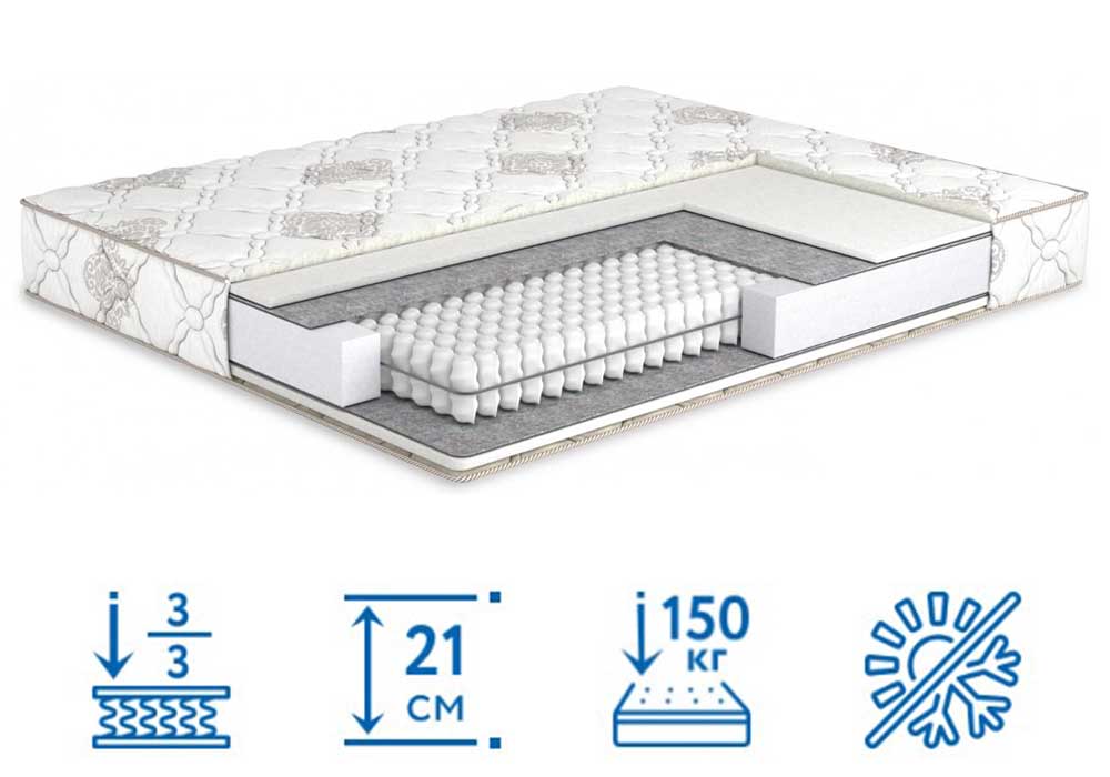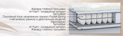 • Thermofiber. Ізолюючий прошарок виключає вплив пружин на м'які внутрішні шари. Володіє потрібним ступенем жорсткості та великим запасом міцності.