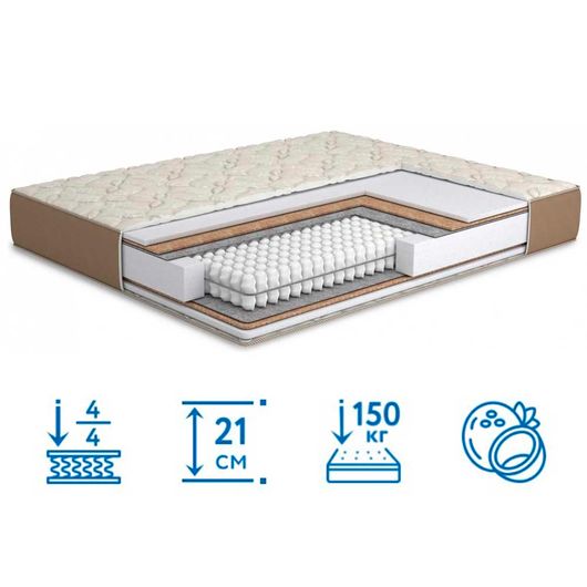 Зручний матрац Mokko / Мокко купити в інтернет-магазині Матрац ТБ розумно, якщо необхідне двостороннє спальне пристосування помірної жорсткості. Конструкція заснована на надійному пружинному модулі Pocket Spring, доповнена декількома функціональними складовими. Виріб відрізняється відмінними ортопедичними характеристиками. Знімний чохол з міцного полотна помітно спрощує гігієнічний догляд.
