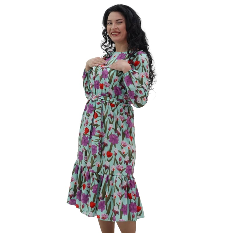 Квітнева сукня доповнена паском, що підкреслює талію! ммм. як жіночно! Волан додає розкоші і робить ваші щиколотки неймовірно витонченими! Такою легкою, ніжною, тендітною ви себе ще ніколи не бачили! У колекції універсальні кольори, доповнені ультрамодним квітковим принтом! Виглядає чудово і надає образу ліфтинг ефекту! Подивіться, як сукня Квітнева освіжає, омолоджує наших моделей! Квітнева сукня - це сукня, яка має бути у кожної жінки!
